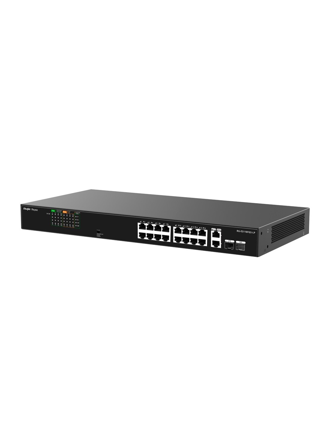 Reyee RG-ES118FGS-LP Reyee Switch Poe Speak - Habitação de Metal - Encorajamento - 16 portas RJ45 10/100 Mbps + 2 Uplink Gigabit