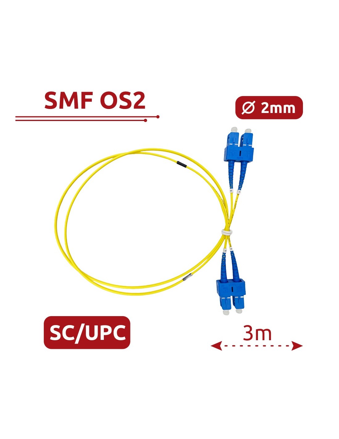 Safire SF-SC-SC-UPC-SC-UPC-OS2-DX-3M-e Cabo de conexão de fibra óptica - Fibra de modo único OS2 - Conector Duplex SC UPC - Comp