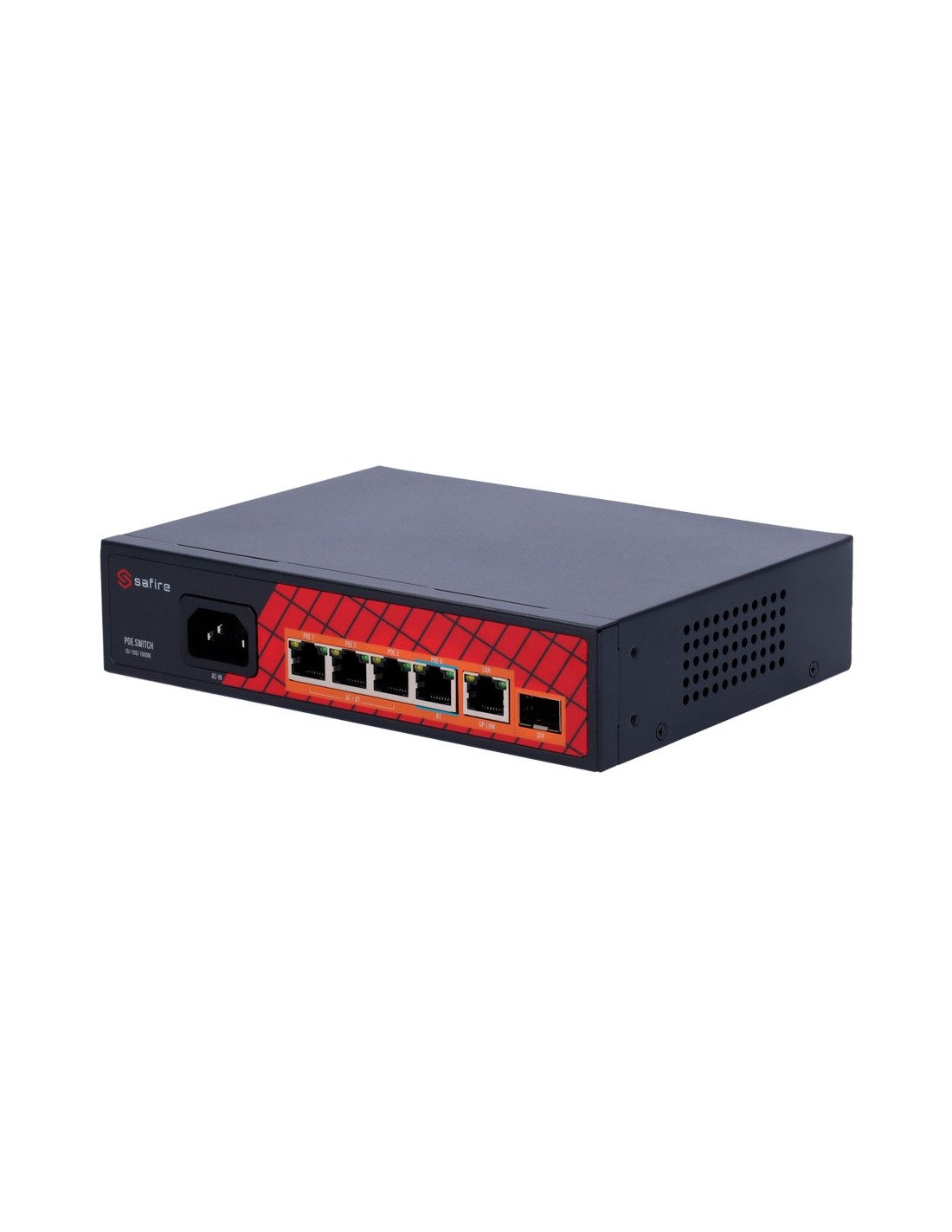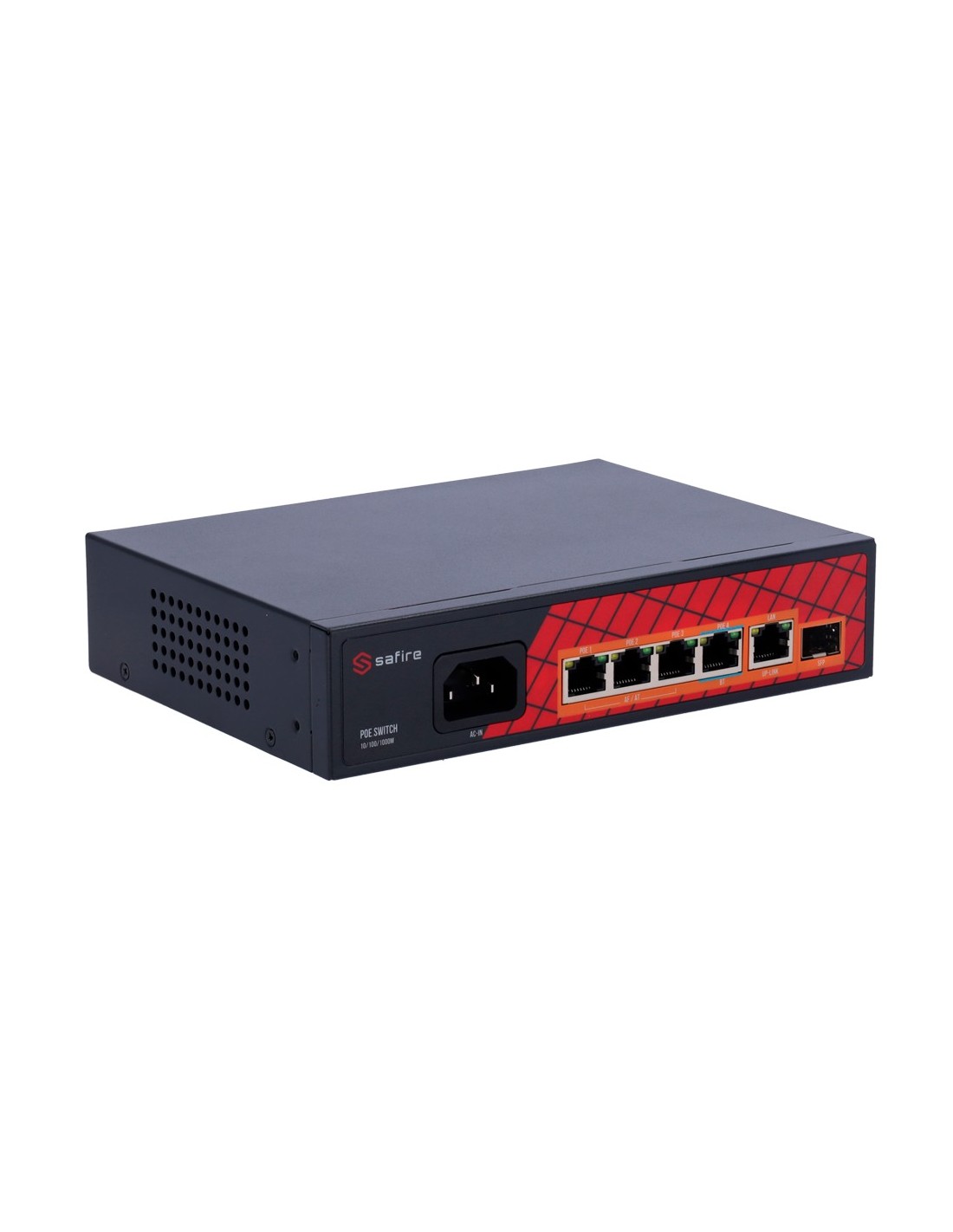 Safire SF-SW0604HPoE-GF-65 Safire Switch Hi-PoE - 4 portas Poe + 1 UPLINK RJ45 + 1 Uplink SFP - Gigabit Porta Velocidade 1