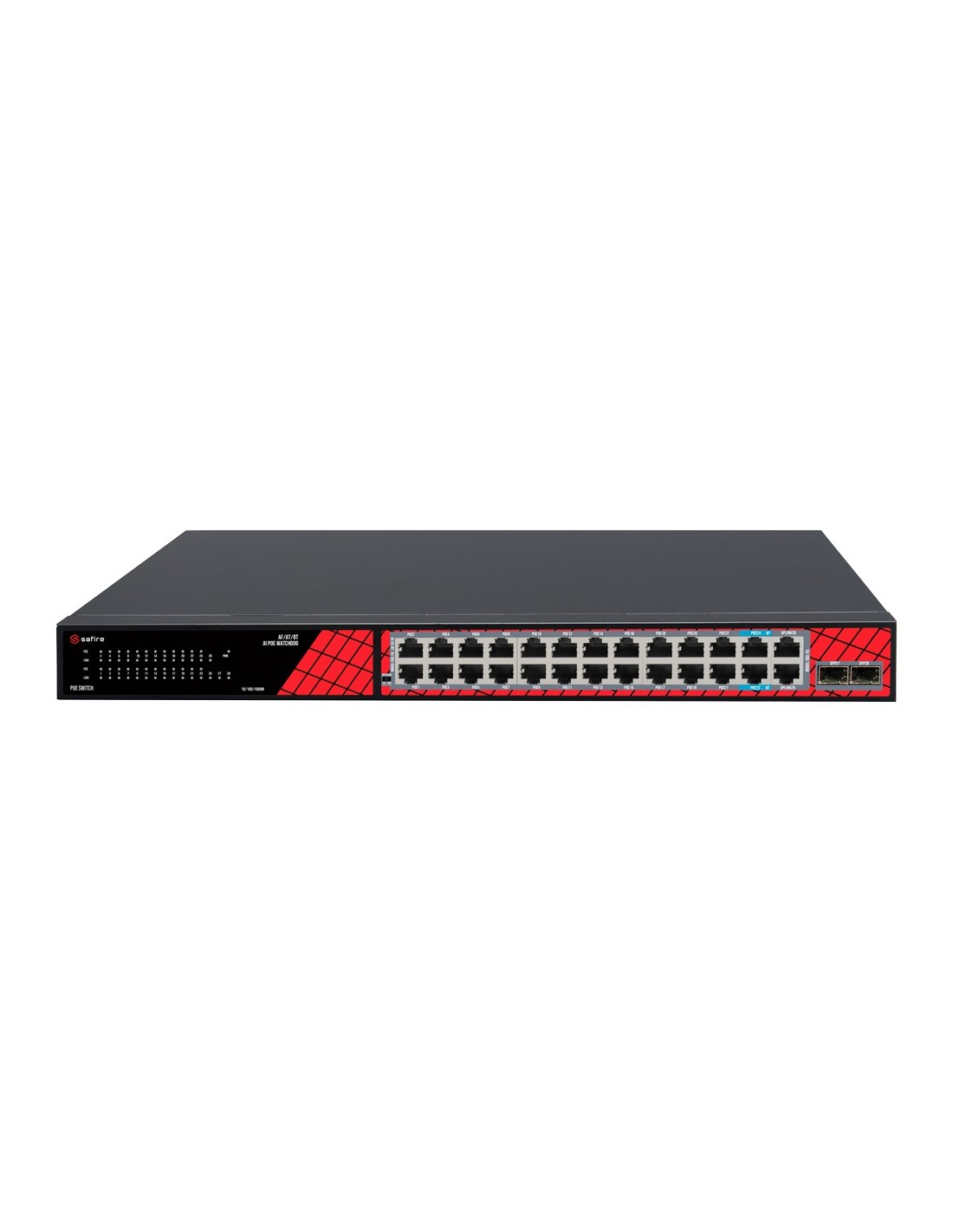 Safire SF-SW2824HPOE-GMF-300 Safire Switch Hi-PoE - 24 portas + 2.5ge SFP UpLink + 2 Uplink RJ45 - Gigabi Porta de velocidade