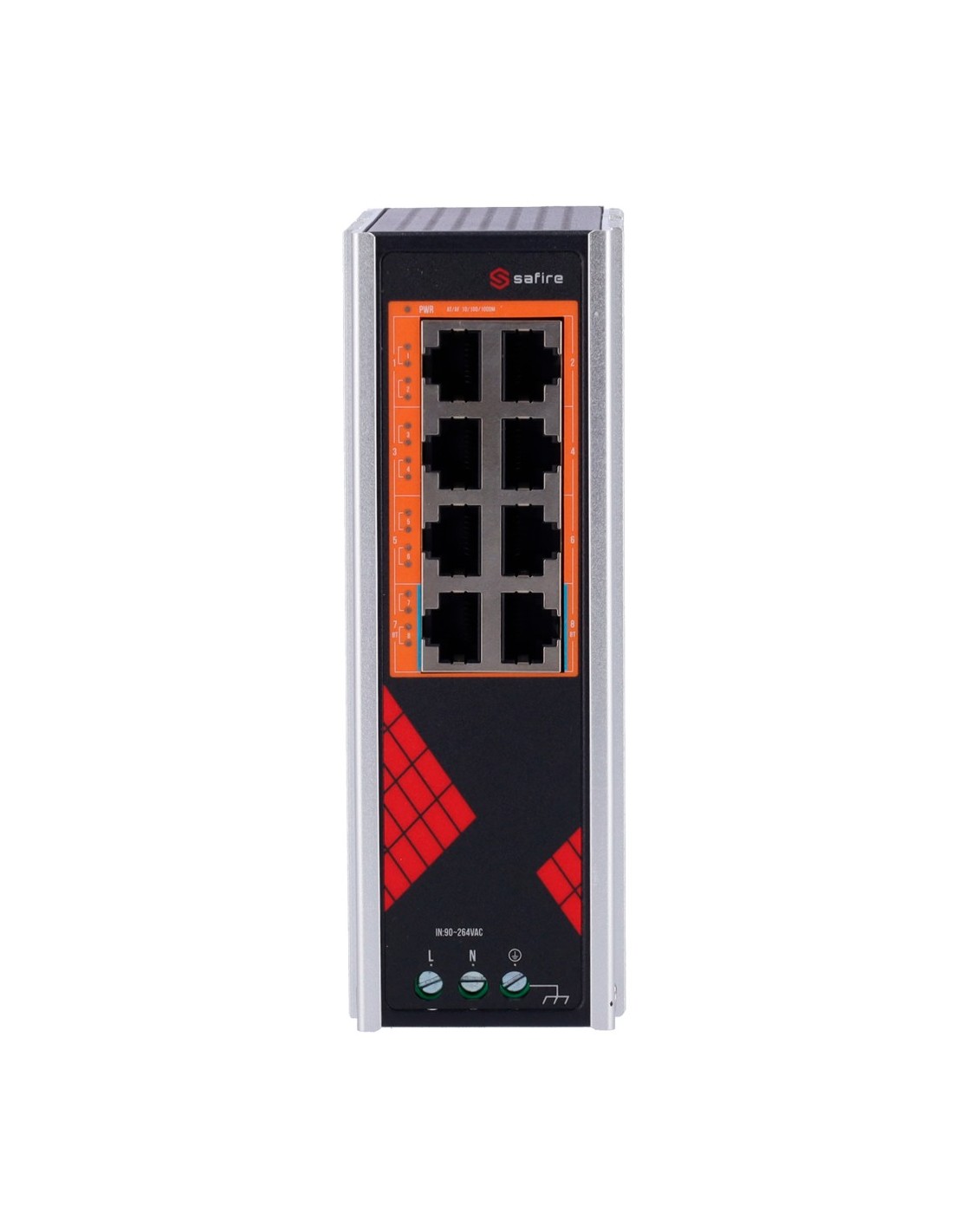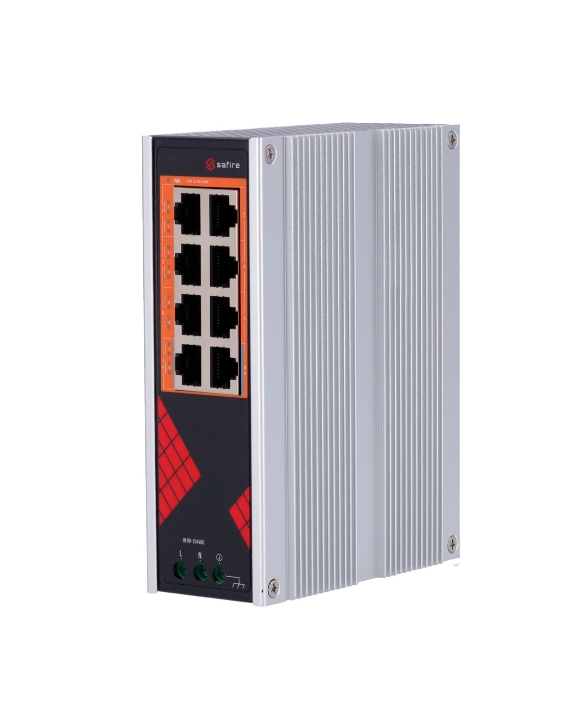 Safire SF-SWI08MhInSoe-G-AC-130-DIN Safe Switch AC industrial 90 ~ 264V - 8 portas Gigabit 10/100 / 1000Mbps - 6 puert