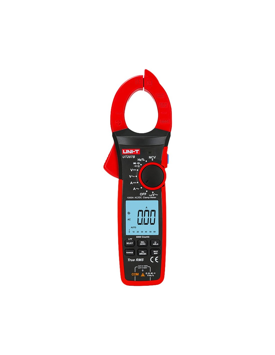 UNI-TENDÊ UT207B LCD Amperímetro - Medição em DC Até 1000V e 1000A - Medição em AC até 1000V e 1000A - Resistência