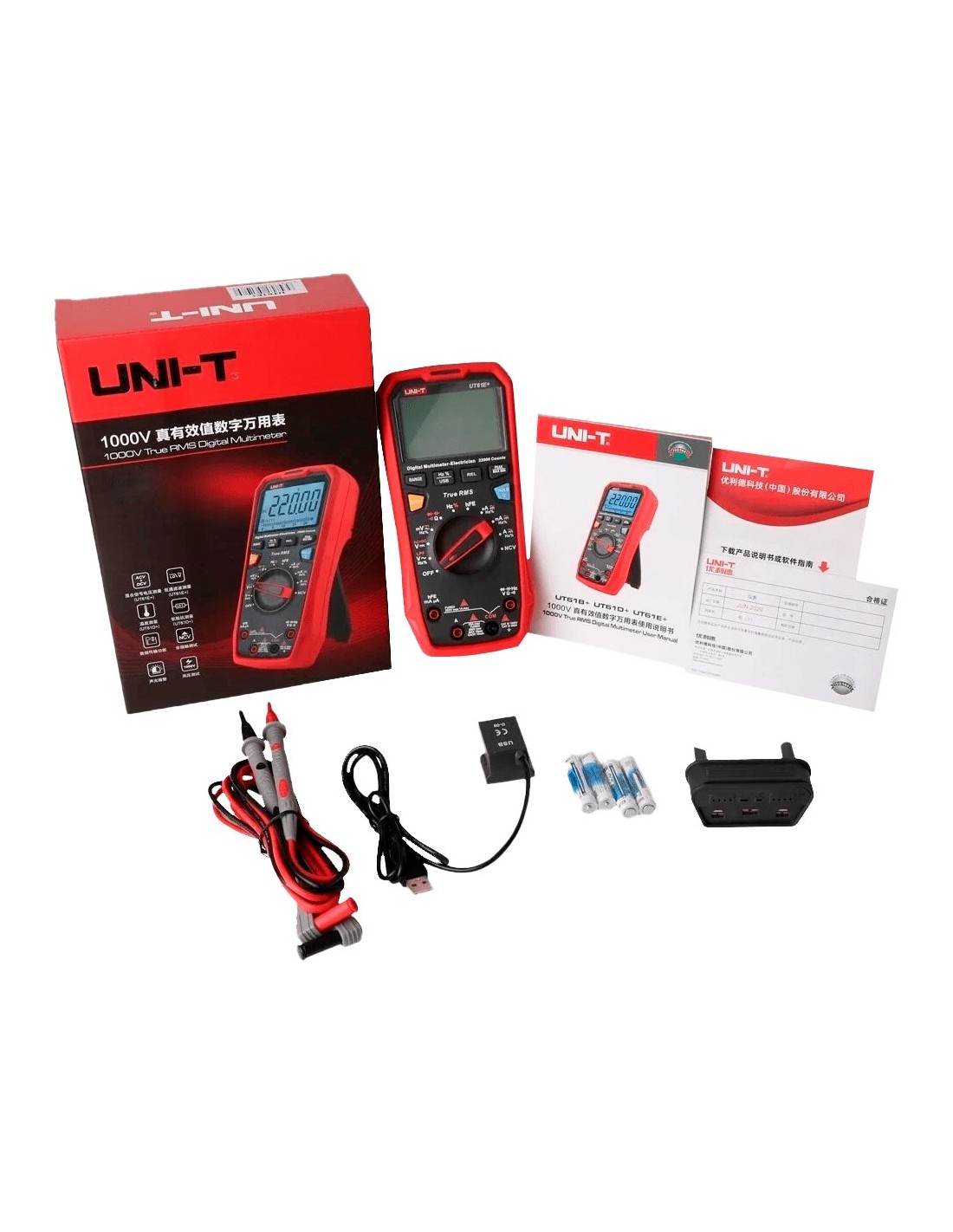 Uni-tendência UT161B Digital Cat III multímetro - Tela de LED de até 6000 contas - Medição em DC e AC até 1000V e 10A - Conexão