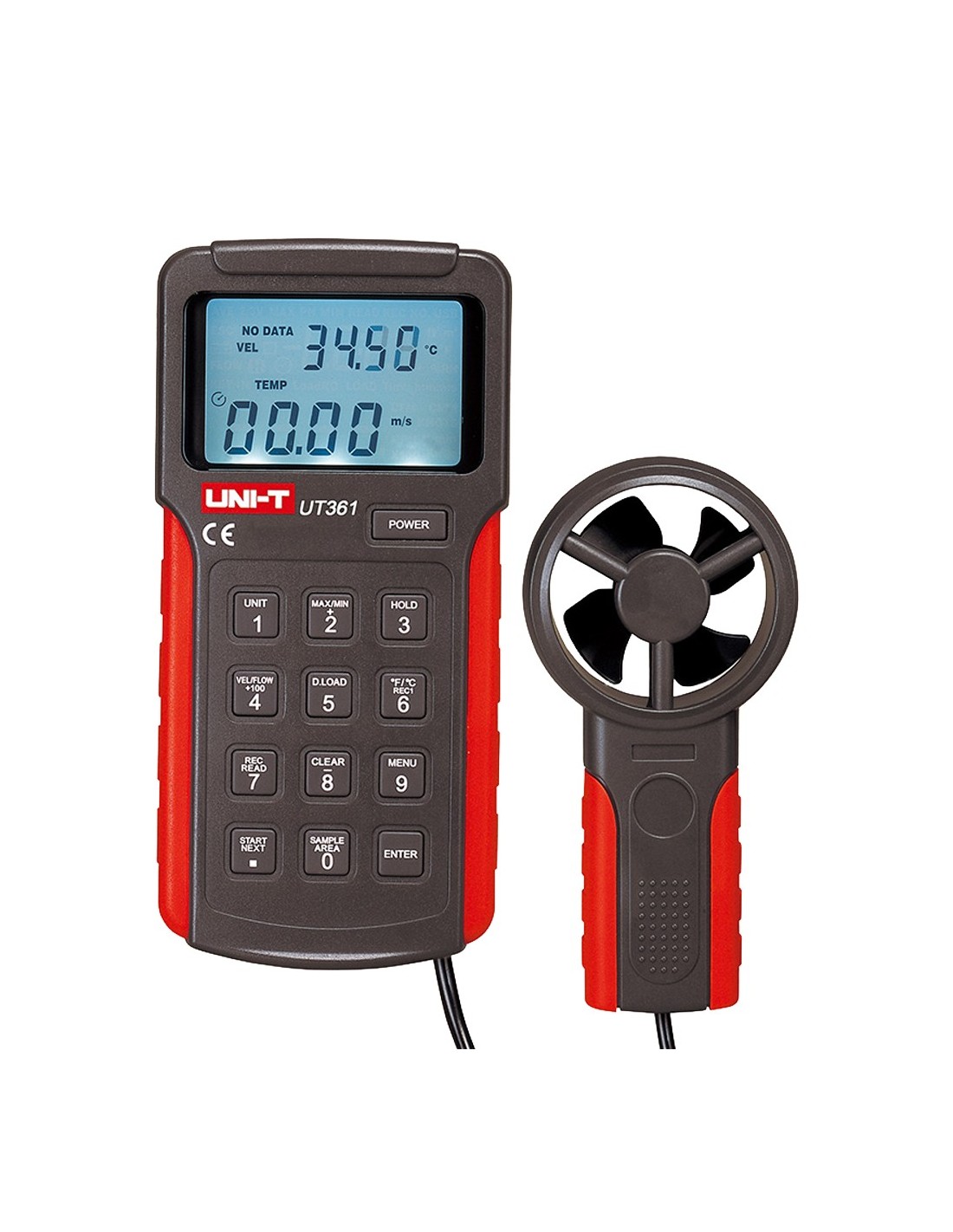 Uni-Trend UT361 Anemômetro Tipo Split - Sensor de Velocidade do Vento de Alta Precisão - Sensor de Temperatura - Auto Off