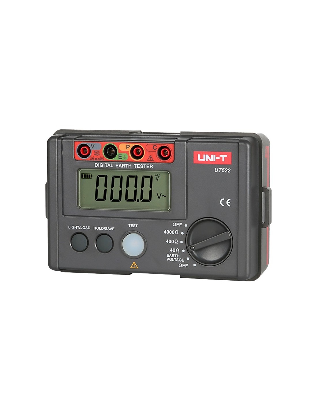 Uni-Trend UT522 Medidor de resistência ao solo - Exibição LCD de até 4000 contas - Medição da resistência à terra até 400