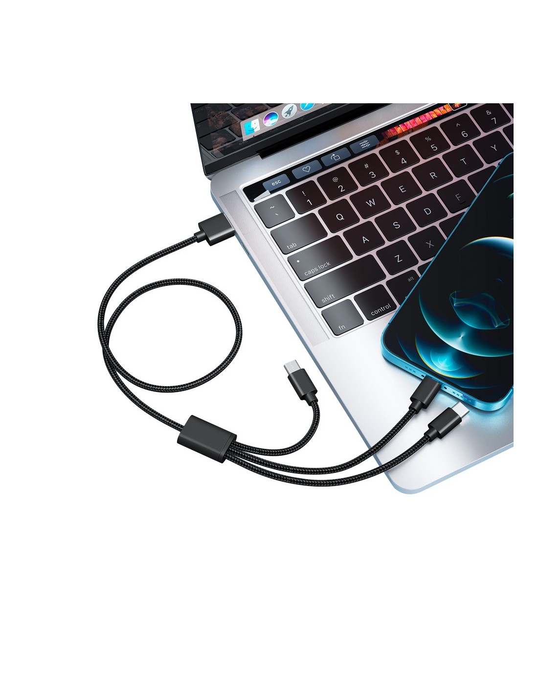 Veger VG-V303 Veger - USB 3 em 1 - USB-A para USB-C, Lightning e Micro-USB - Tampa de metal, Nylon Trançado - Comprimento 1.5