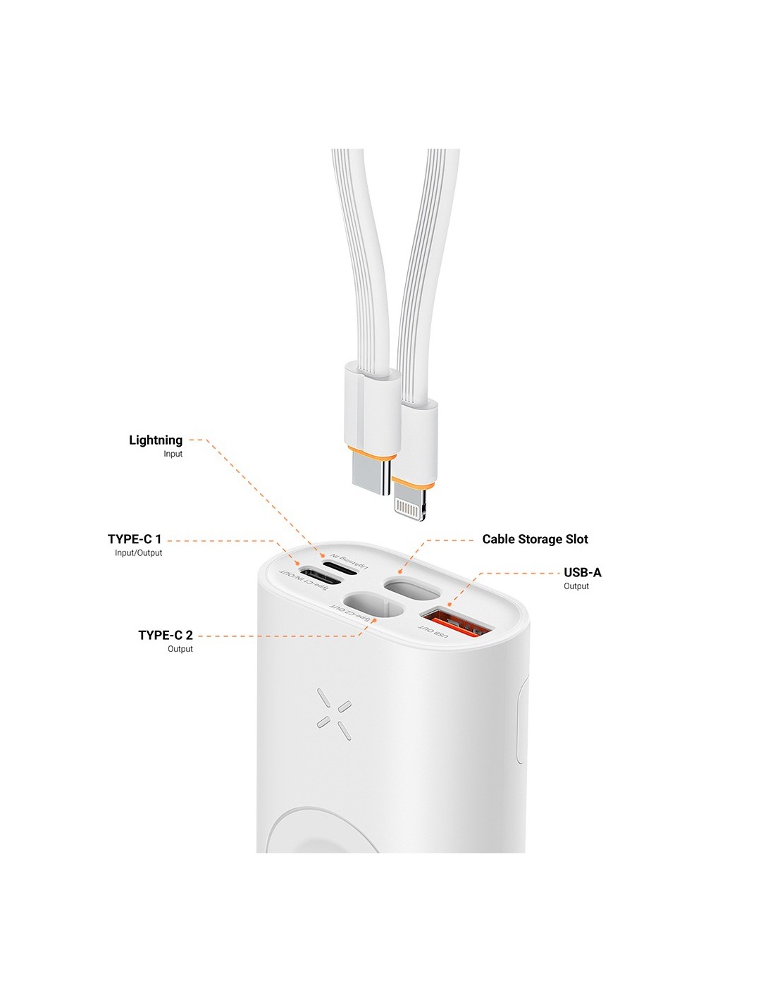 Vger VG-W1162S Mini Bank Mini com carga LED - 10000mAh Capacidade - USB-C, Relâmpago - Sais 2x USB-C, USB-A,