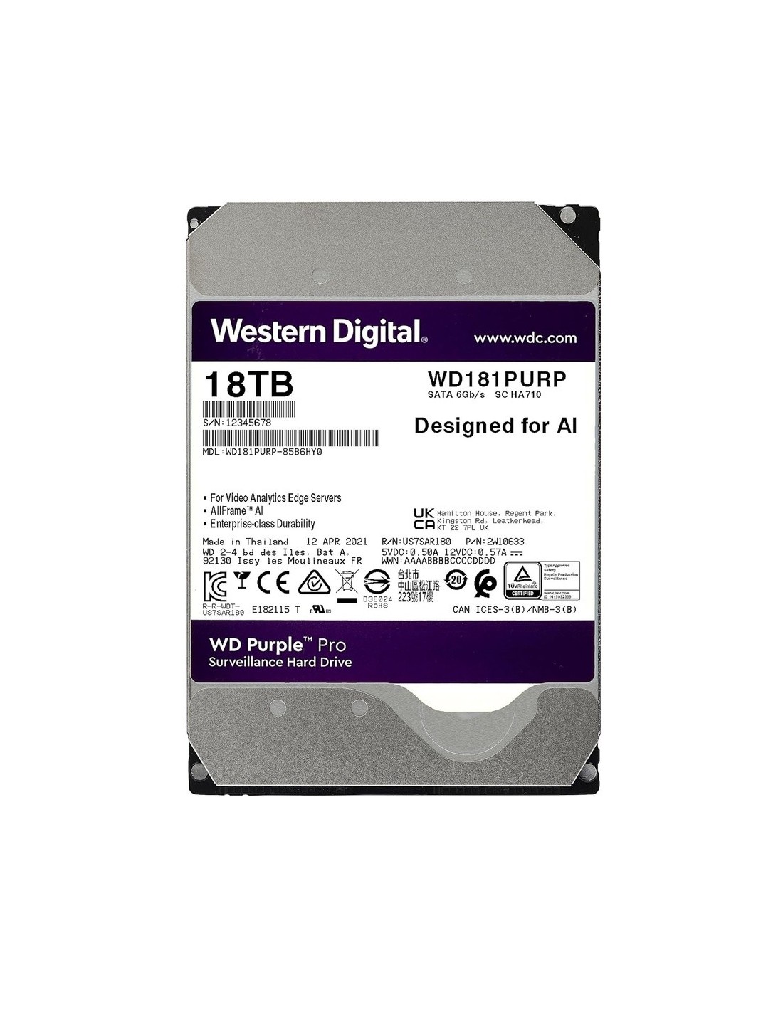Western Digital Ocidental-49 WD181Purp Disco Rígido WD Roxo Pro 18TB Segurança Especial
