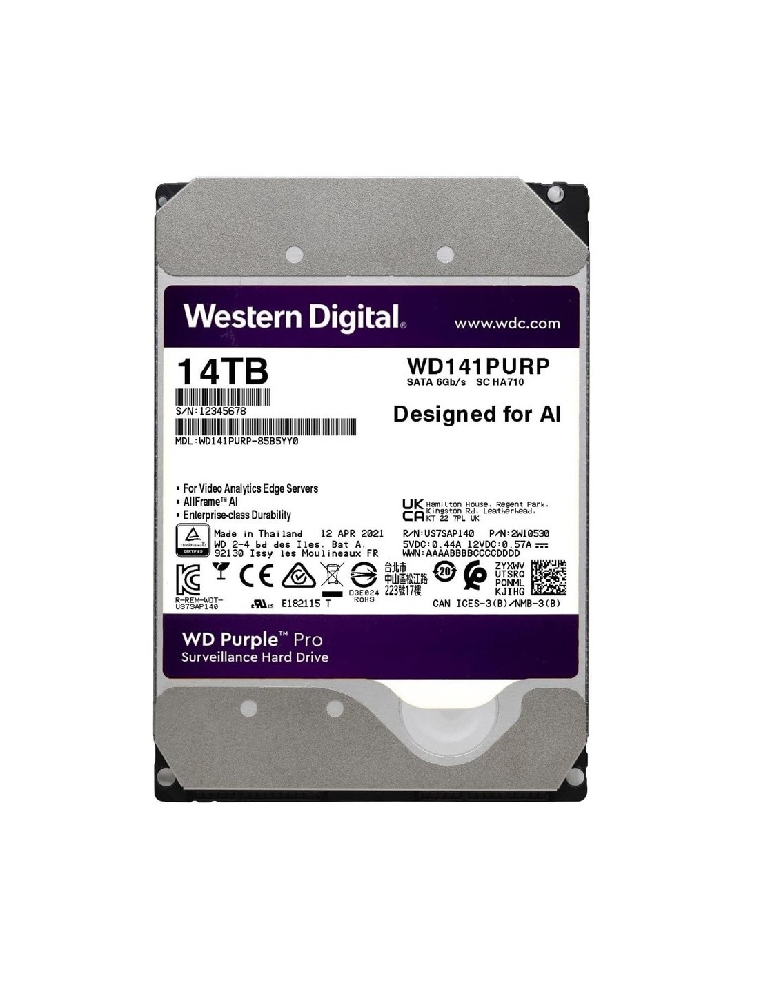 Western Digital Western Western-48 WD142Purp Disco Rígido WD Roxo Pro 14TB Segurança Especial