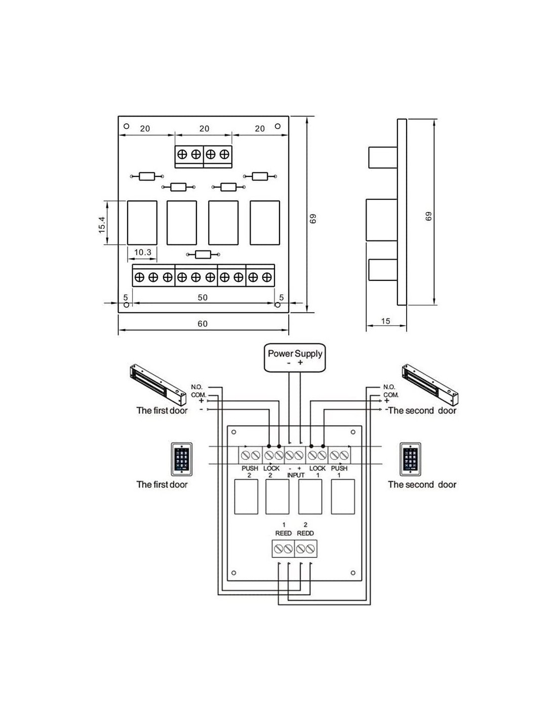 YLI PCB-501 Módulo de Relé - Criação de fechaduras de duas portas - Saída dupla - tamanho pequeno - adequado para todo o tipo de