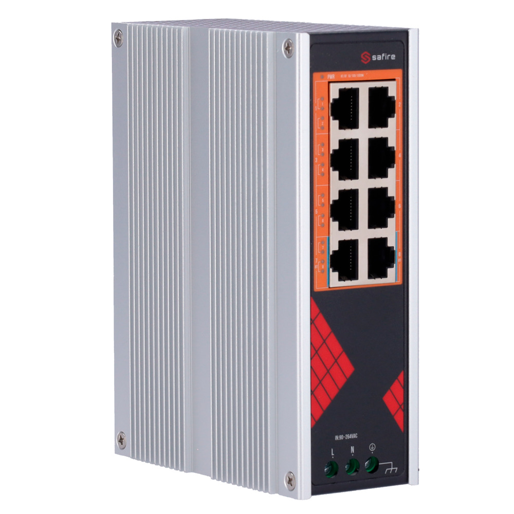 SAFIRE SF-SWI08HIPOE-G-AC-130-DIN Safire Switch Industrial Alimentación AC 90~264V - 8 puertos Gigabit 10/100/1000Mbps - 6 Puert