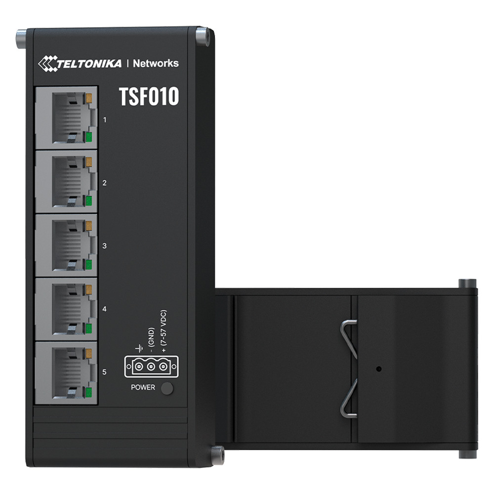 Teltonika Switch No gestionable Industrial - 5 puertos Ethernet RJ45 Fast Ethernet - Rugerizado Carcasa Aluminio Anodizado - Plug and Play - Alimentación DC 7 a 57V - Led de Estado