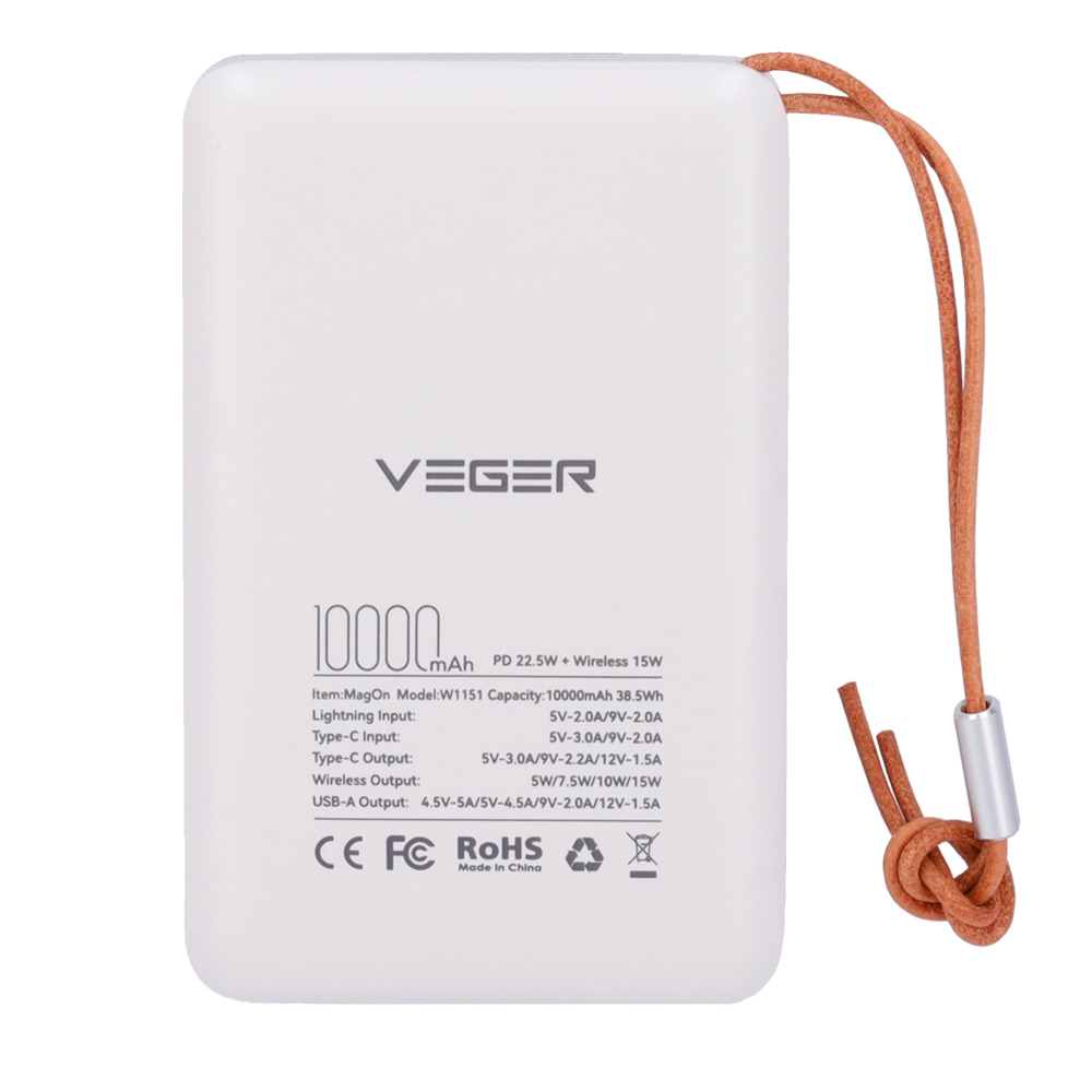 VEGER VG-W1151-W VEGER Power bank magnética inalámbrica - Capacidad 10000mAh - Entradas USB-C, Lightning - Salidas USB-C, USB-A